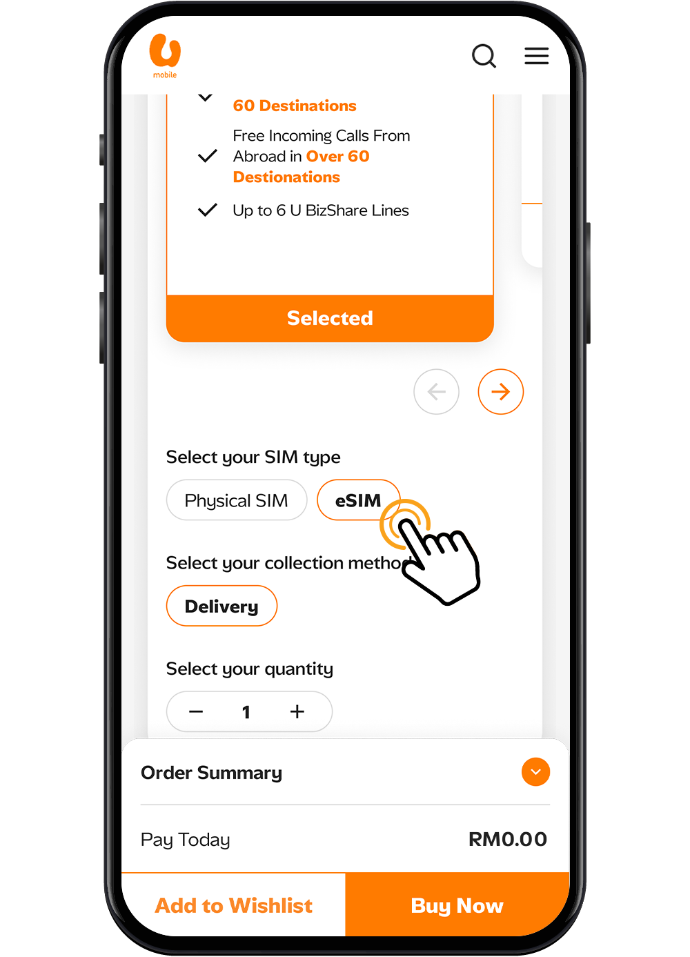 An eSIM is an embedded SIM that’s built into a tiny chip within your device. With eSIM, you no longer need a physical SIM card to use data or make calls. Simply scan a QR code & activate your eSIM to get connected to our U Mobile network.