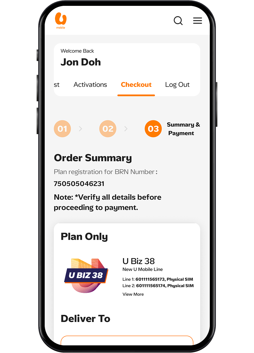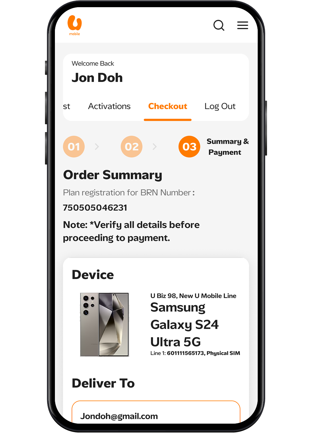 Once the payment is confirmed and the order is completed, you can retrieve your eSIM QR code via the email received or through the U Business Store.