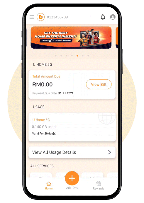 Customers who register for U Home 5G during the promo period will receive RM10 rebate off from the normal charges of RM78 per month. This rebate will be prorated according to your first bill and will automatically be reflected on your subsequent monthly bills.