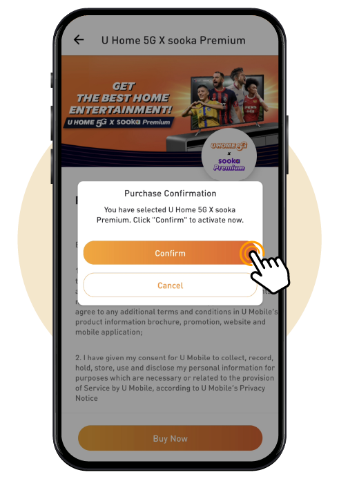Locate the 'U Home 5G x sooka Premium' banner in the homepage or find it under Featured Service, then tap ‘Buy Now' to proceed to the product page.