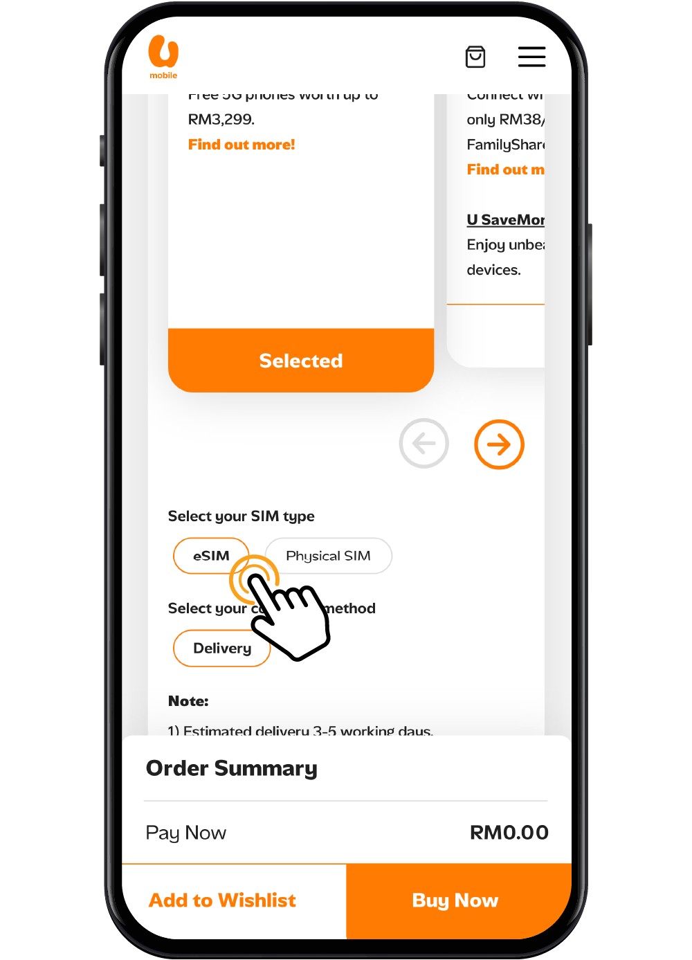 Visit U Mobile’s Online Store and select your preferred Postpaid or Prepaid plan.