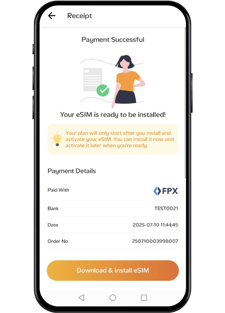 Once your payment is confirmed, you will receive an eSIM QR code via email.