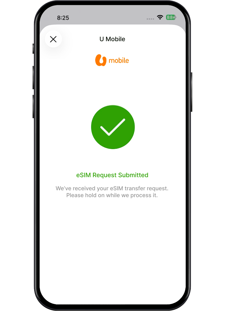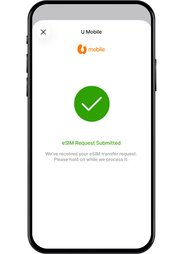 You will receive the eSIM QR Code via your email or MyUMobile App. Scan the QR Code to activate your eSIM and complete the port-in process.